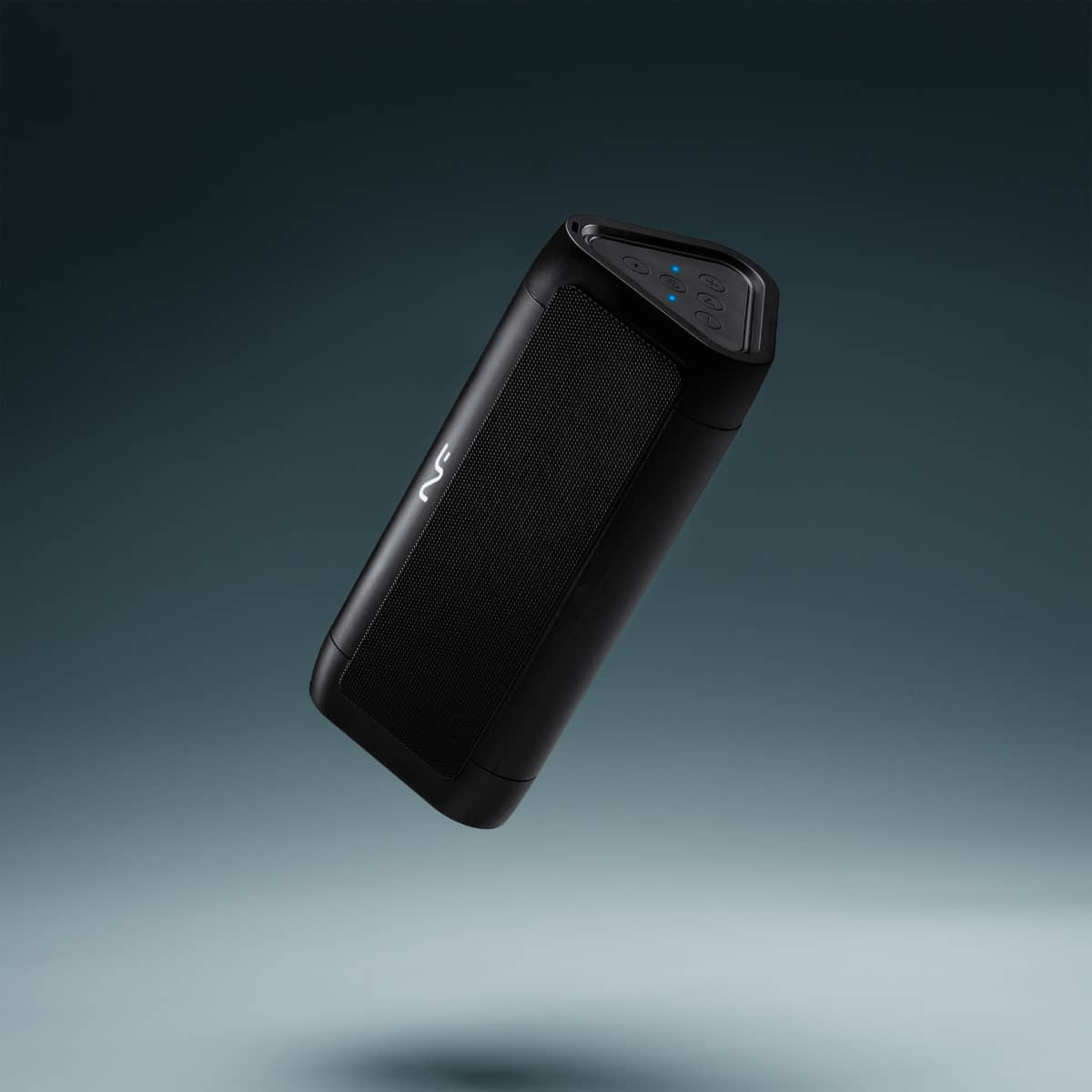 Altavoz Bluetooth realizado en material resistente al agua, con potencia de 10W. Cuenta con un tiempo de funcionamiento continuo de hasta 8 horas. Con función de carga inalámbrica de 5W para dispositivos provistos de esta tecnología y función manos libres, con botones multifunción de control de llamada y micrófono incorporado. Incluye indicador luminoso de carga y soporte para móvil en la parte posterior.