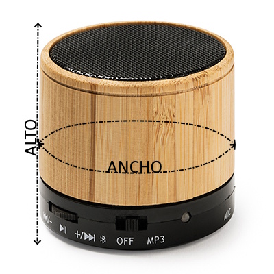 Altavoz inalámbrico Bluetooth con cuerpo de bambú. Se ha confeccionado con función radio FM, manos libres, ranura para tarjeta Micro SD. Este altavoz tiene una potencia de 3W y batería recargable. Incluye el Cable y viene presentado en caja de diseño eco.