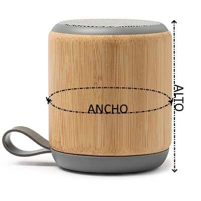 Altavoz inalámbrico con cuerpo elaborado en bambú y detalles en ABS, con 3W de potencia, y duración de funcionamiento continuo de hasta 3 horas. Incorpora asa de transporte de silicona. Salida de audio a través de conexión Bluetooth e indicador luminoso de conexión. Cuenta con control de encendido/apagado y puerto de carga.