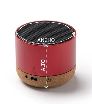 Altavoz inalámbrico fabricado en aluminio reciclado y base de corcho. Con potencia de 3W y batería recargable de 300mAh. Tiempo máximo de reproducción continua de hasta 3 horas.Salida de audio mediante conexión Bluetooth. Cuenta con botón multifunción en la parte trasera e indicador luminoso de carga.