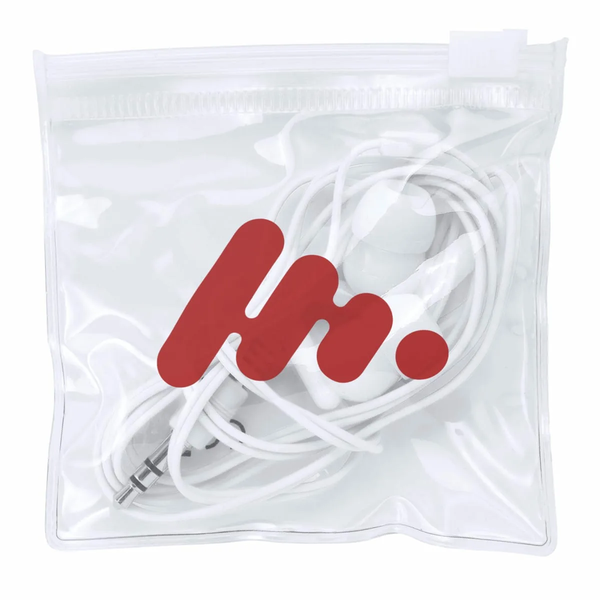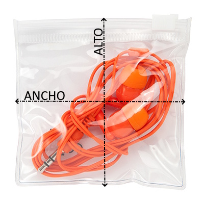 Auriculares presentados en práctica funda transparente de PVC con autocierre. Conexión Jack 3,5mm. Cable con botón de seguridad incluido.