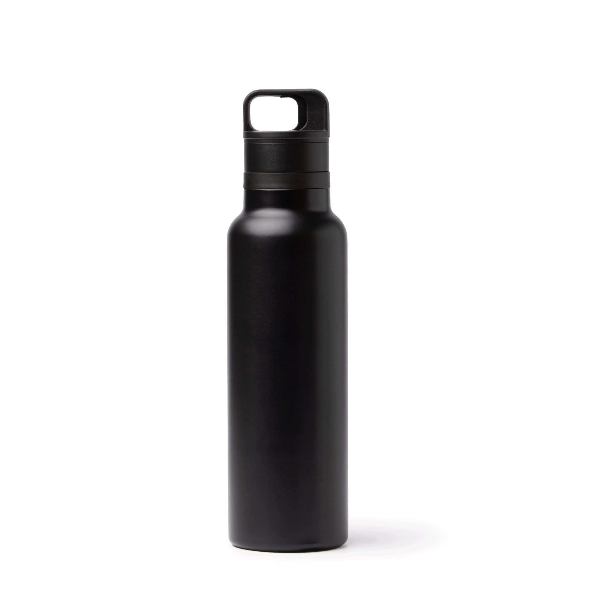 Bidón realizado en acero inoxidable 304 reciclado de doble pared con capacidad 750 ml. Tapón en color negro con asa incorporada. Sistema de apertura automática al presionar un botón que incorpora en la parte interna. Incluye sistema antigoteo gracias a su anillo interior de silicona.
