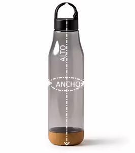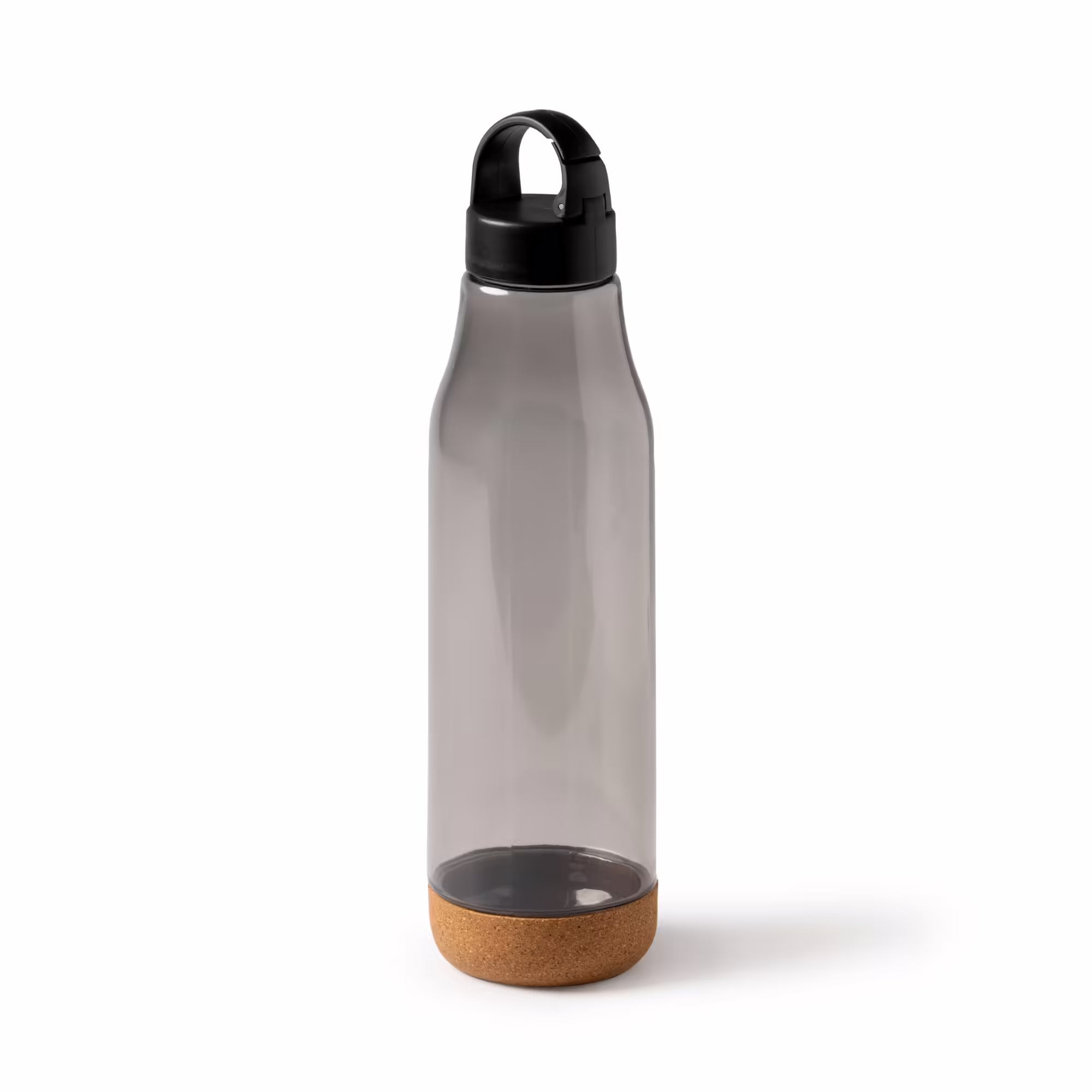 Botella con cuerpo de RPET y base de corcho. Asa de transporte con función mosquetón en la tapa, para facilitar su transporte. Capacidad 720 ml. Su base de corcho evita el deslizamiento del bidón en superficies. Una opción ligera y práctica para el transporte de bebidas y líquidos.