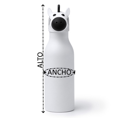 Bidón térmico con diseño infantil de doble pared y cuerpo elaborado en acero inoxidable 304. Tapón con funda en forma de animal elaborada en PP. Cuenta con capacidad para 450 ml y sistema antigoteo gracias a su anillo de silicona. Ideal para niños gracias a su divertido diseño y estructura.