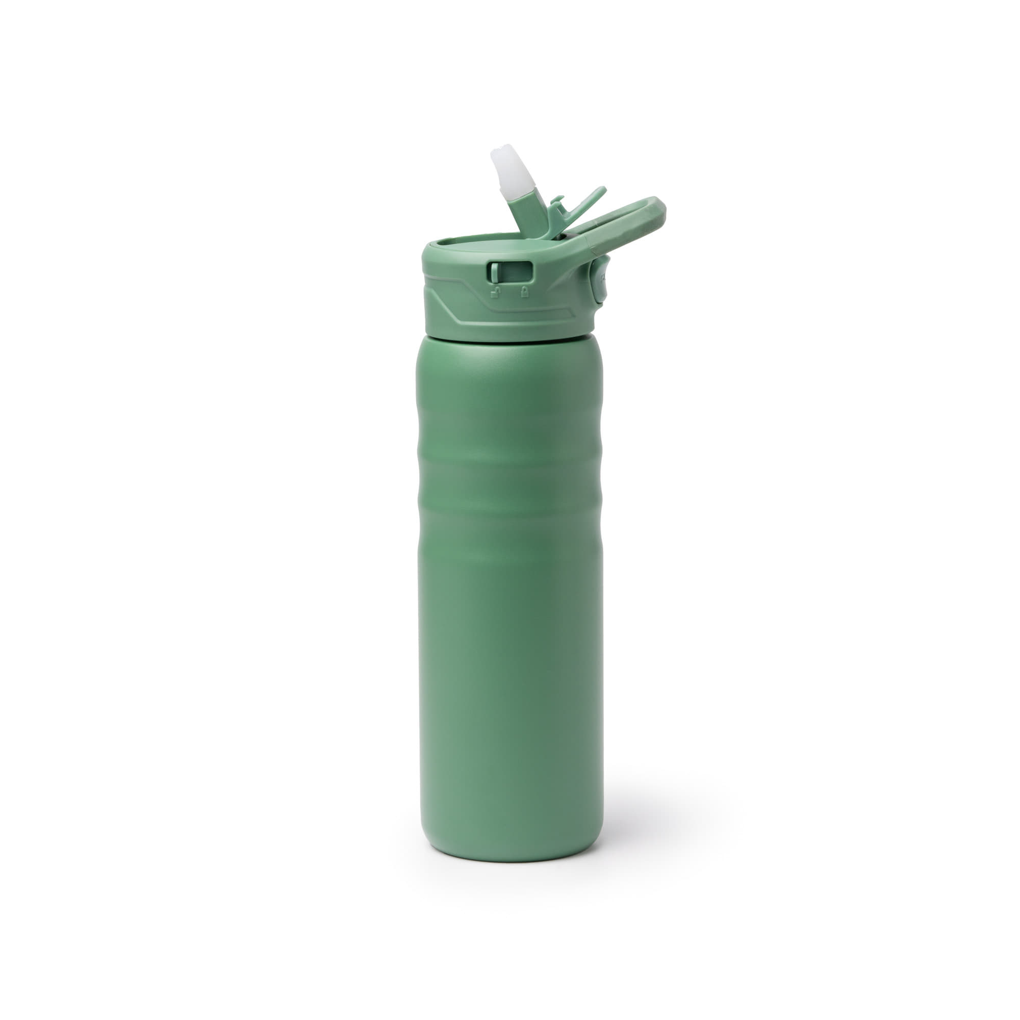 Bidón térmico elaborado en acero inoxidable reciclado 304 de doble capa. Con capacidad 710 ml. Tapa con pajita abatible con recubrimiento de silicona integrada con cierre individual y sistema automático de apertura mediante botón. Incluye, además, un bloqueo de la apertura de la esta tapa que cuenta con sistema antigoteo gracias a su recubrimiento de silicona y del anillo que incorpora el cuello del bidón. En la tapa además, se incluye su asa de transporte.