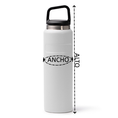 Bidón térmico de doble pared elaborado en acero inoxidable 304 reciclado en acabado mate. Capacidad de 550 ml. Tapón en negro con mosquetón incorporado en el asa de transporte.