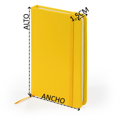Bloc de notas A5 con tapa rígida de polipiel. Marcapáginas y banda elástica. 100 hojas lisas.