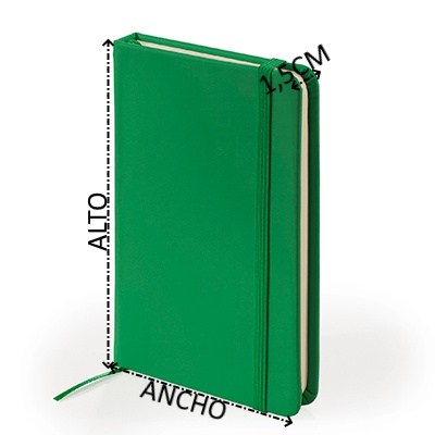 Bloc de notas A5 con tapa rígida de polipiel. Marca páginas y banda elástica. 100 hojas a una raya.