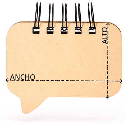 Bloc de notas adhesivas con anillas y original diseño en forma de bocadillo. Tapas de cartón reciclado rígido. Incluye notas adhesivas en colores variados de dos tamaños: 100 grandes y 125 pequeñas.