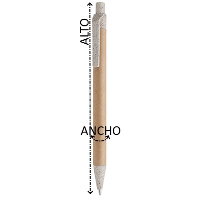 Bolígrafo pulsador hecho en cartón reciclado, con la punta y el clip en fibra de trigo y ABS.