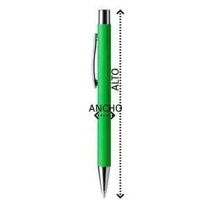 Bolígrafo con pulsador y cuerpo metálico de tacto suave. Punta, clip y pulsador en metal cromado. Especial para marcaje láser.