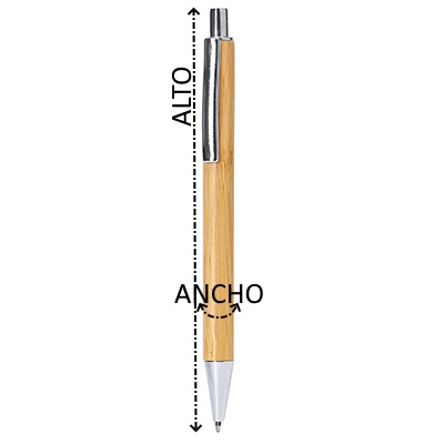Bolígrafo línea eco con cuerpo de bambú, pulsador, clip y punta metalizada. Carga de 1,0 mm con tinta azul.