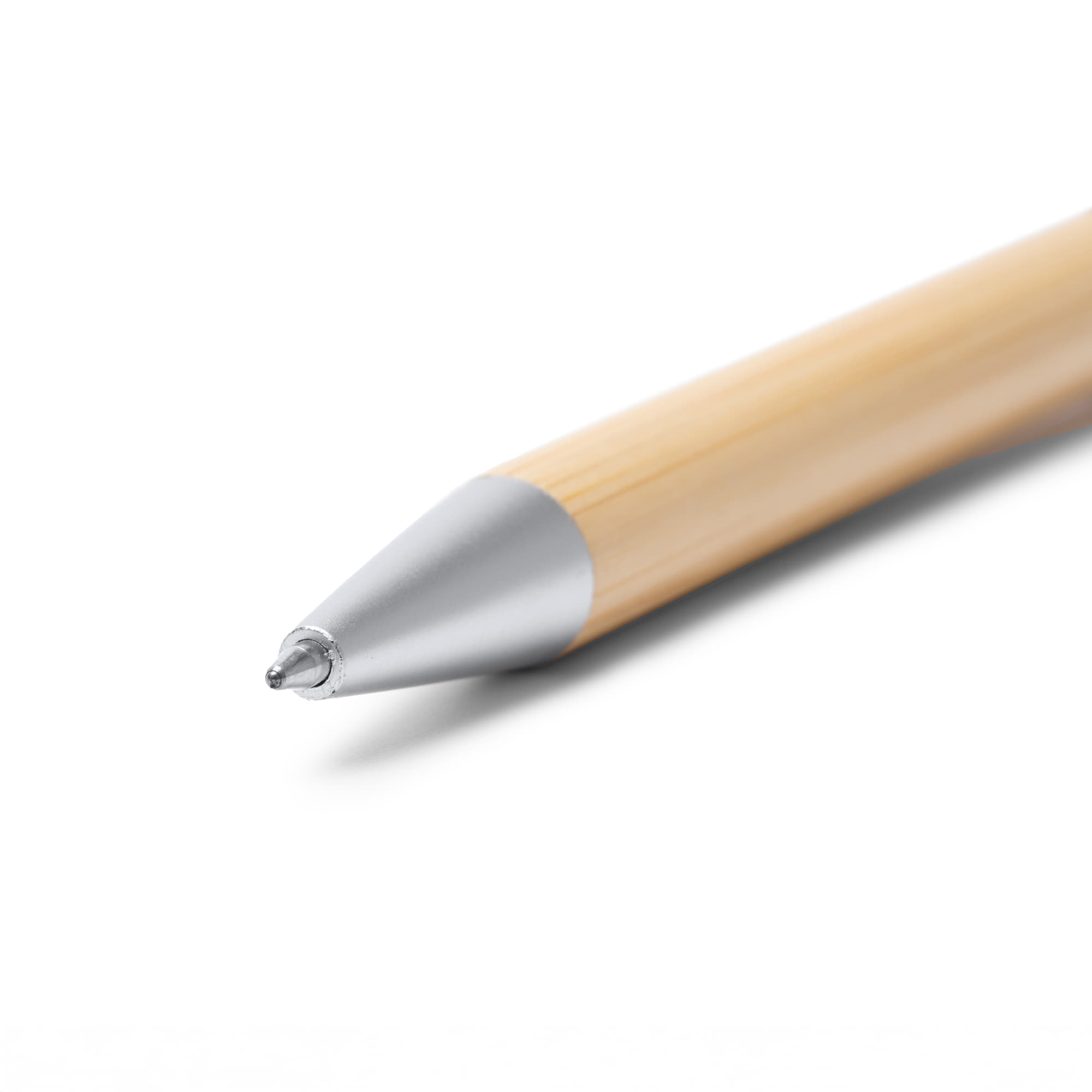 Bolígrafo con función spinner antiestrés. Cuerpo elaborado en bambú y puntero táctil con detalles en acabado metálico mate. Carga jumbo de tinta azul.