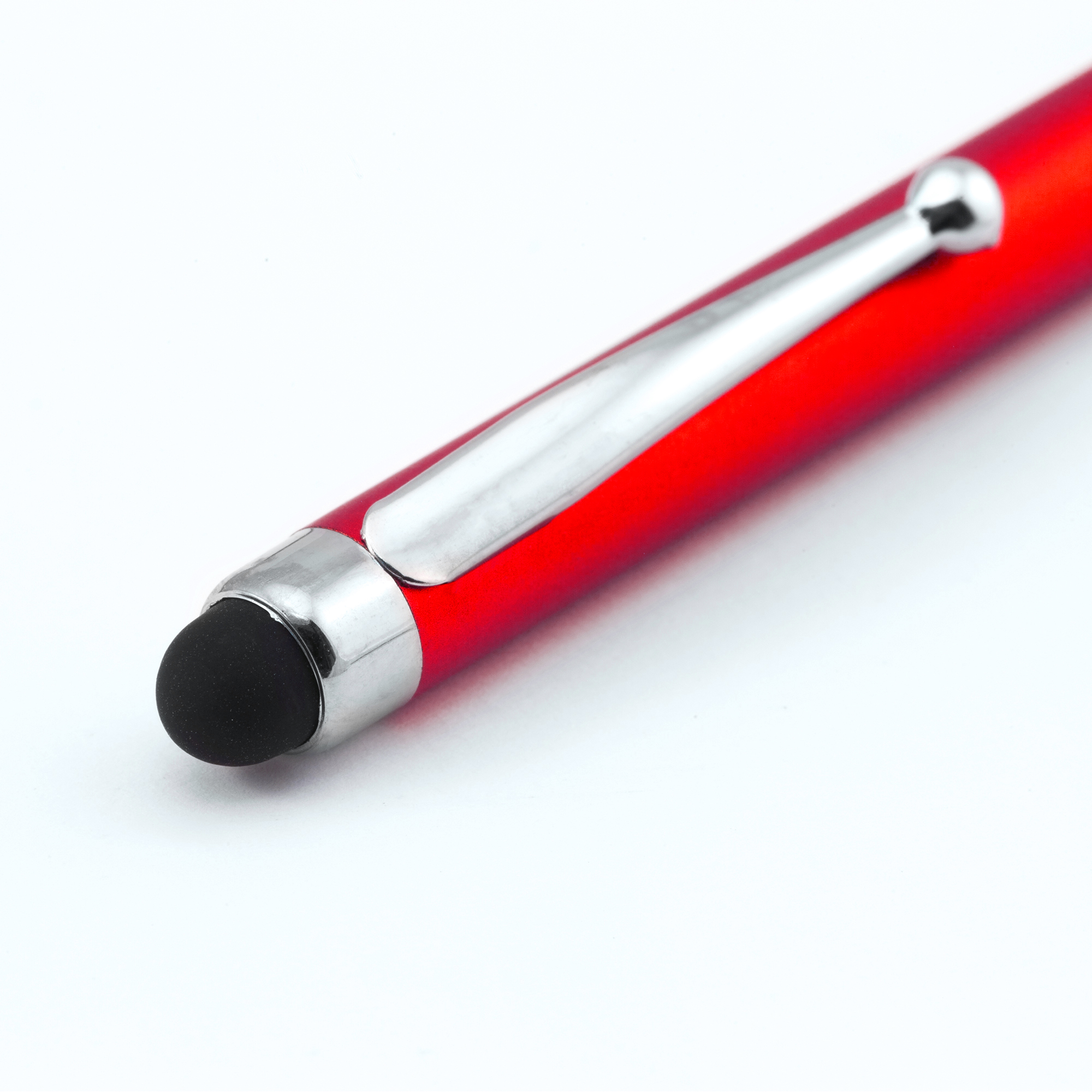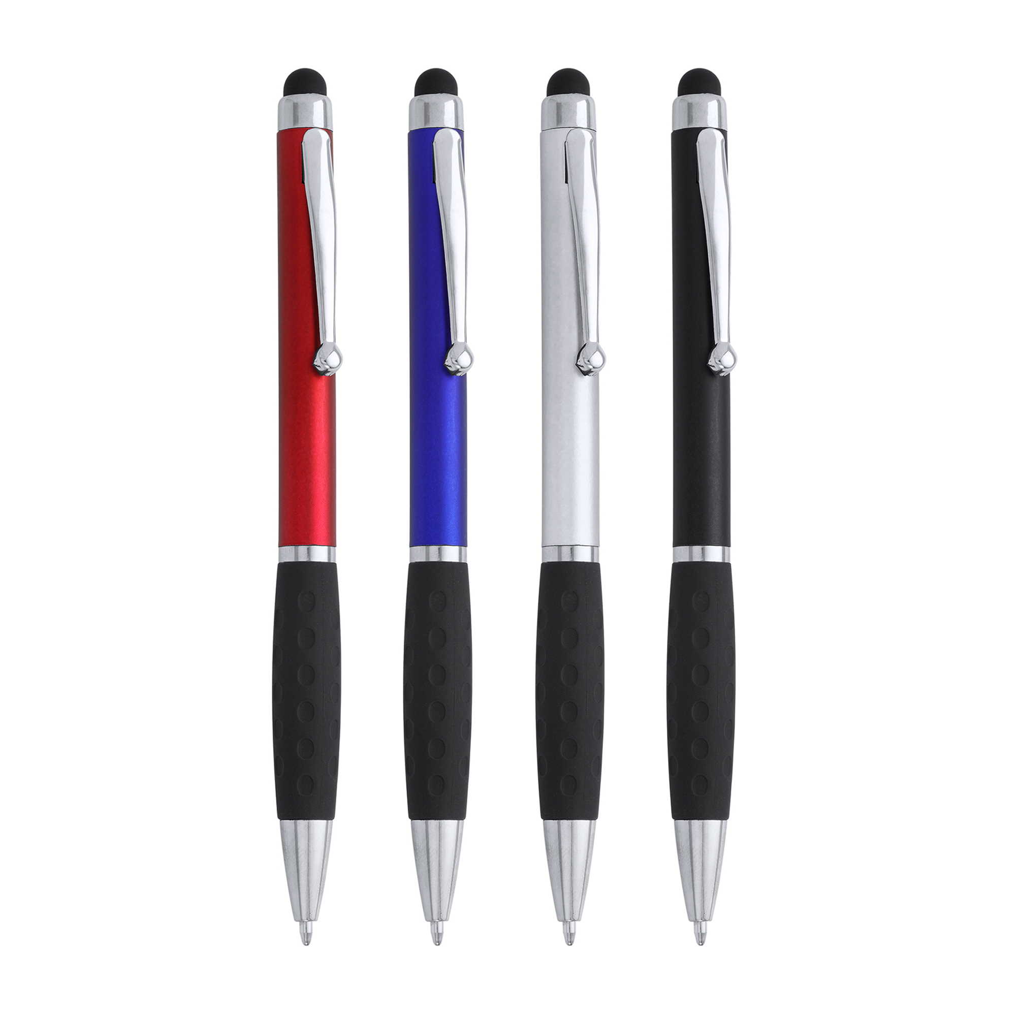 Bolígrafo giratorio en ABS con puntero táctil. Acabado metálizado. Tinta azul.