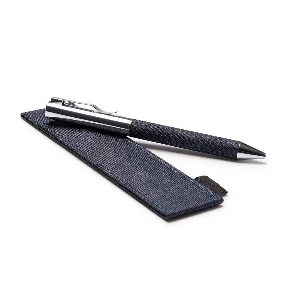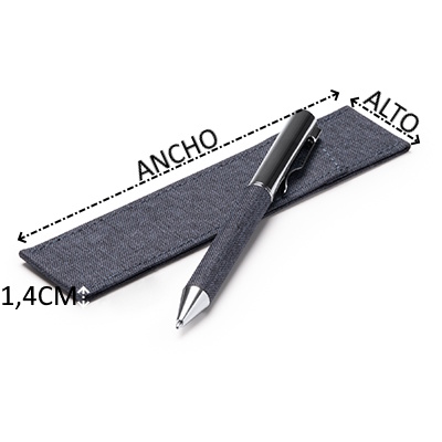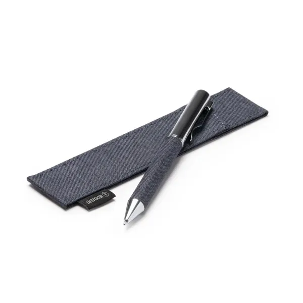 Bolígrafo giratorio realizado en metal y poliéster reciclado RPET. Tinta azul. Presentado en funda de poliéster reciclado RPET a juego.