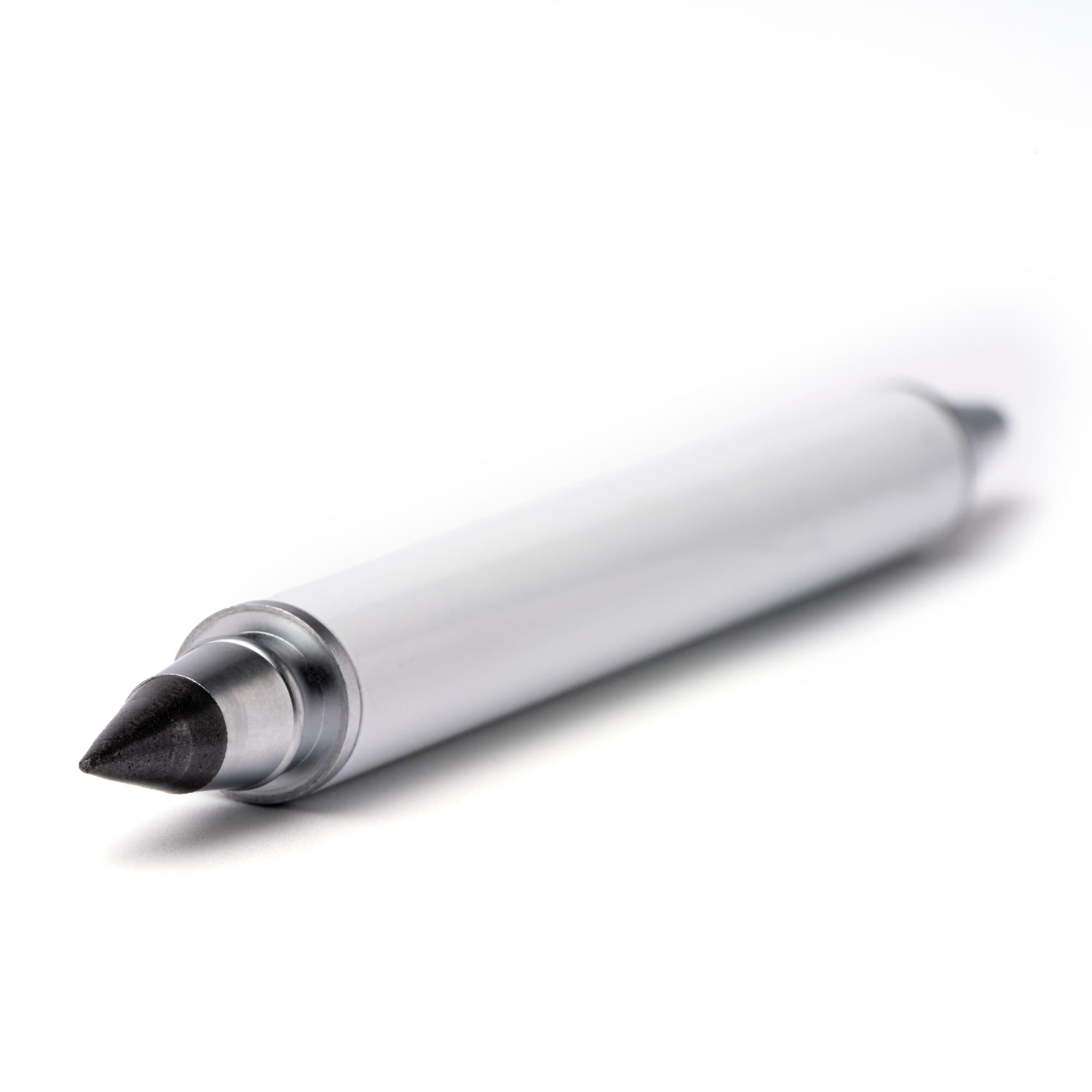 Bolígrafo lápiz infinito 2 en 1 con cuerpo metálico. Cuenta con bolígrafo de carga jumbo de tinta azul en uno de sus extremos y en el opuesto, lápiz de punta infinita, ambos con tapa. Presentación individual en estuche negro individual con acolchado interior.