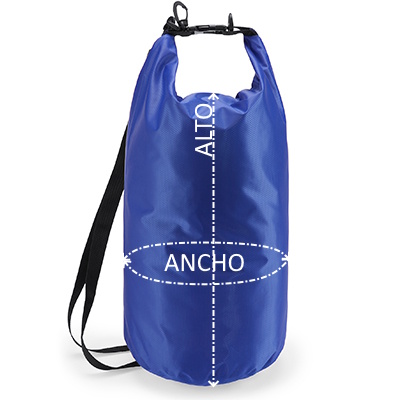 Bolsa impermeable de resistente ripstop. Sistema de cierre estanco con clic. Mosquetón y cinta bandolera ajustable para transporte. Capacidad total: 15L. Capacidad útil: 10L.