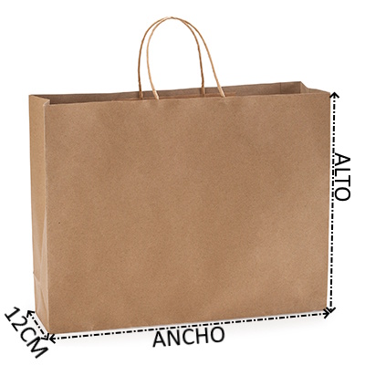 Bolsa de papel en acabado natural 110gr/m2. Asa cortas reforzadas en diseño rizado.