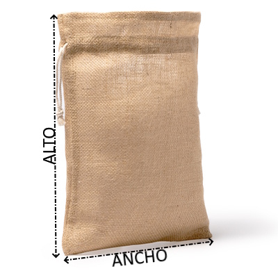 Bolsa estilo saco de yute natural. Cierre con cordones de algodón.