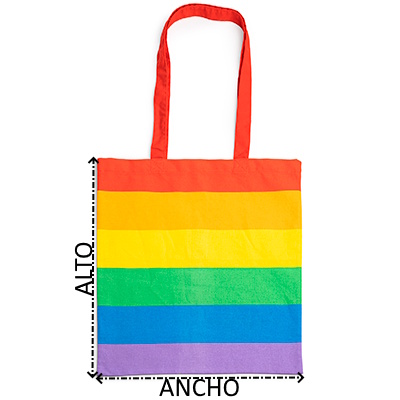 Bolsa 100% algodón de 180 g/m² con acabado multicolor. Asas largas reforzadas de 70 cm.
