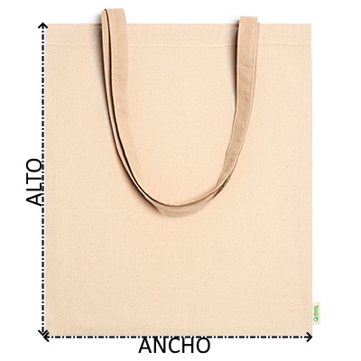 Bolsa 100% algodón orgánico de 120 g/m² con asas largas reforzadas de 70 cm.