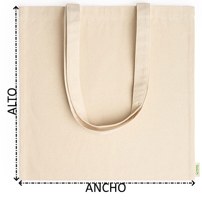 Bolsa 100% algodón orgánico de 300 g/m² con prácticas asas largas de 70cm.