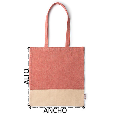 Bolsa bicolor de algodón reciclado de 120 g/m² con acabado jaspeado en el cuerpo y algodón natural en la parte inferior. Con asas largas reforzadas de 70 cm para mayor comodidad en el transporte de tus objetos personales.