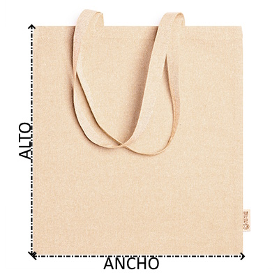 Bolsa 100% algodón reciclado de 120 g/m² en acabado jaspeado con asas largas de 70 cm.