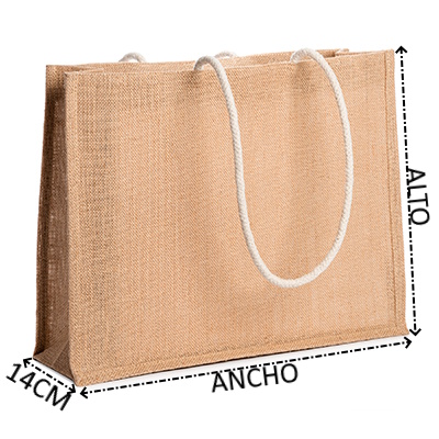 Bolsa de playa rectangular de yute con asas de algodón de 70 cm. (9-10 mm. diámetro).