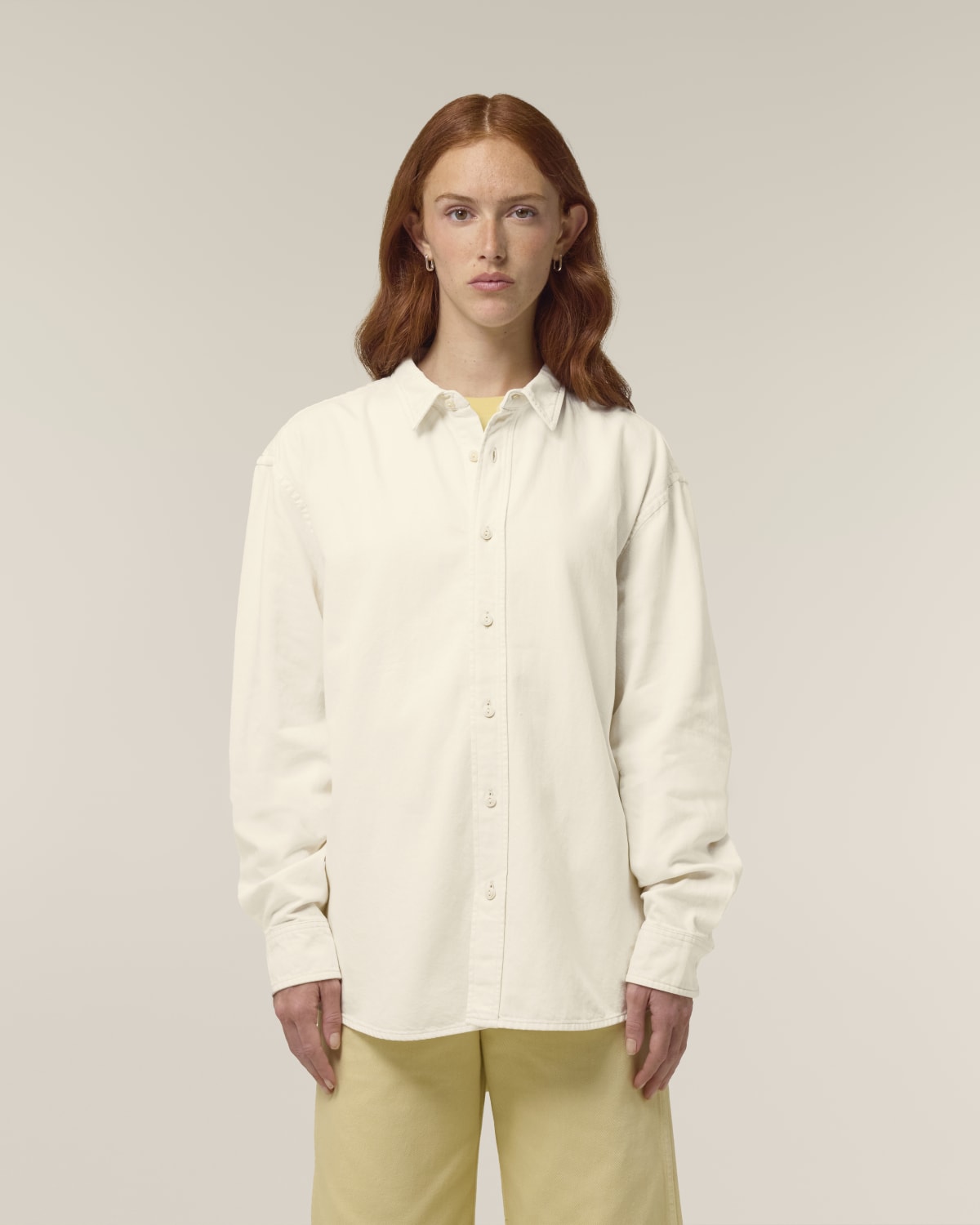 Cuello de punta con pespuntes de aguja simple Pie de cuello Tapeta delantera con pespuntes de aguja simple en cada lado Costura de hombro adelantada Canesú trasero Canesú interior en el mismo tejido Mangas montadas Tapeta de la manga con un botón Puño con dos botones Esquinas de los puños redondeadas Pliegues dobles en la costura del puño Solo para el negro G. teñido: Efecto descolorido en todas las costuras debido al lavado de la prenda Producto teñido en prenda, cada prenda puede variar en apariencia, el color puede desteñir, siga nuestra etiqueta de cuidado Lea cuidadosamente las recomendaciones de impresión
