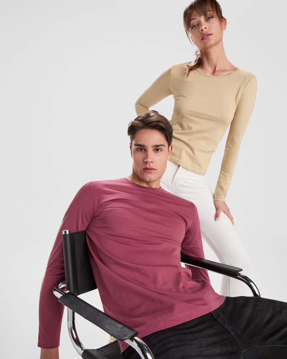 Pues adelante, disfruta de nuestra camiseta de manga larga confeccionada 100% en algodón y acabada con el tratamiento de la casa Roly para mayor suavidad en el tacto y durabilidad.