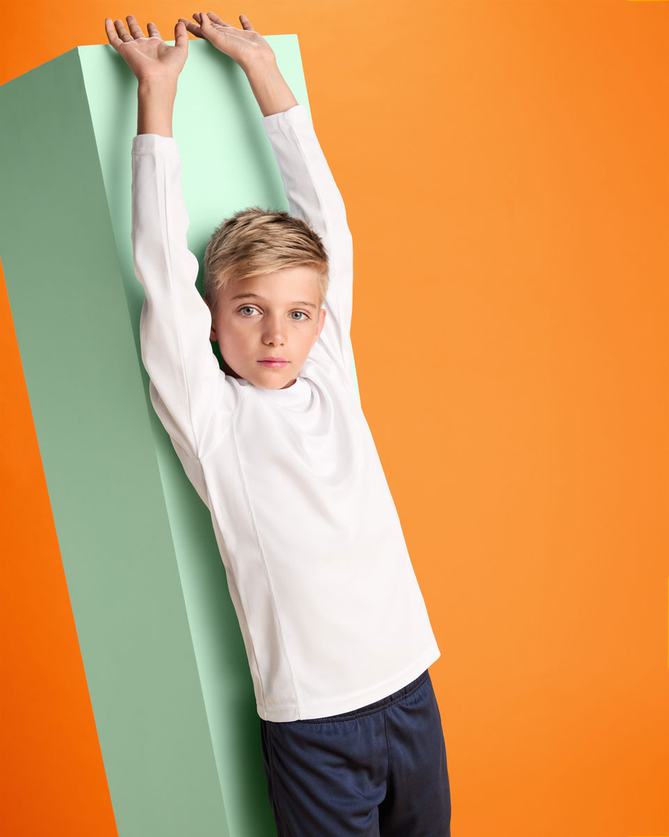 La camiseta técnica de manga corta de niño Roly Montecarlo L/S 0425 más que una prenda “extra” para cuando a los peques se les antoja hacer deporte, es una necesidad.