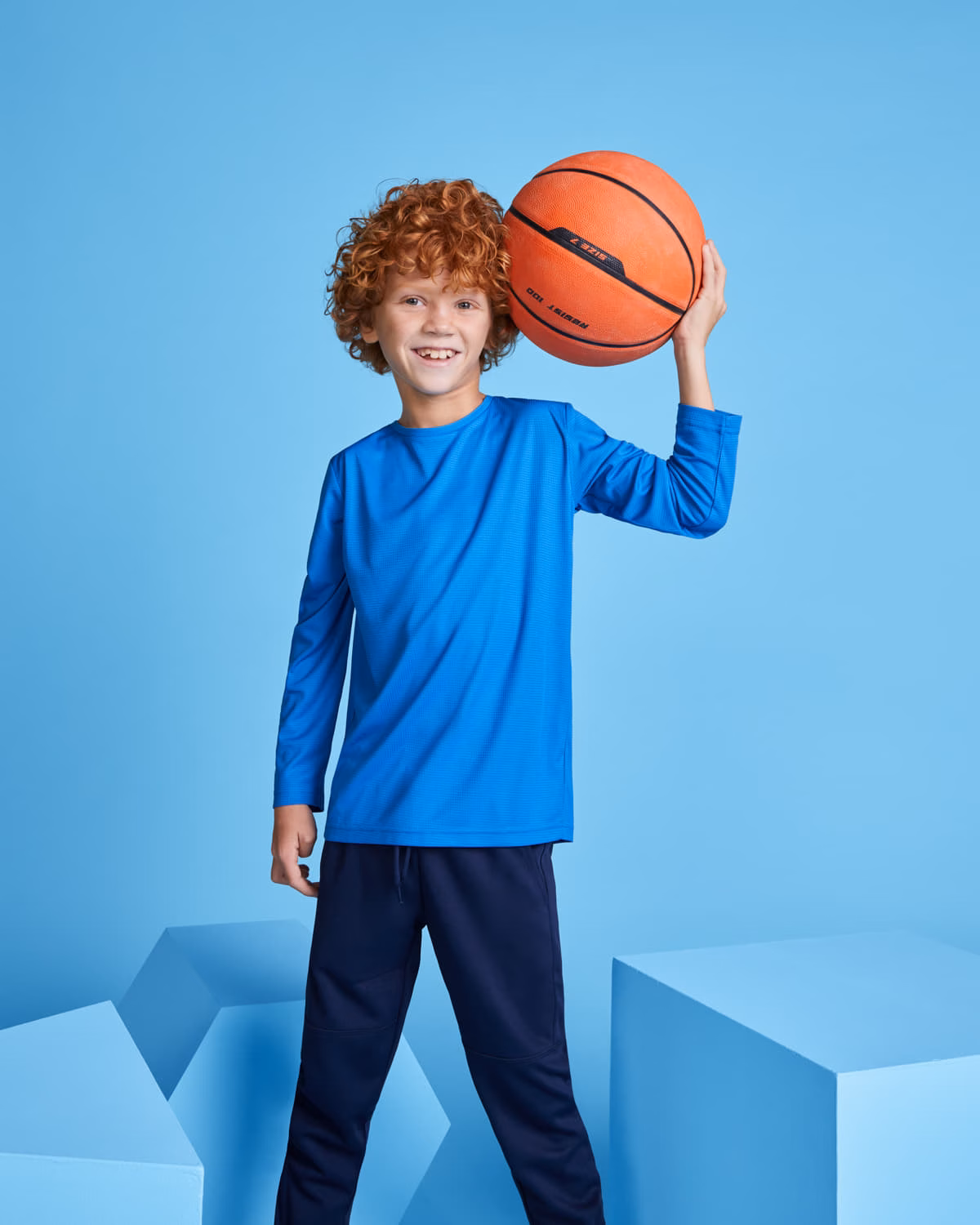 Diseñada para aguantar lo que sea — desde partidos improvisados hasta excursiones escolares o tardes infinitas en el parque —, su tejido técnico ligero y cómodo lo acompaña en todas sus aventuras. El cuello con cubrecosturas a tono evita roces molestos, porque nadie quiere que su hijo se esté quejando de “esa etiqueta que pica” a mitad de una carrera.
