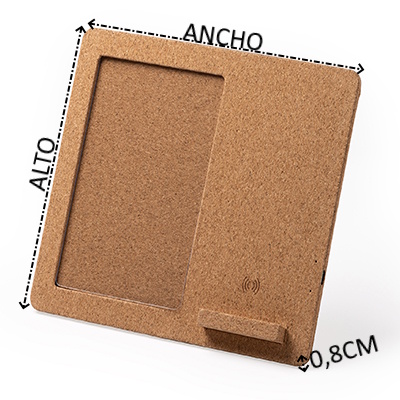 Cargador inalámbrico realizado en corcho con marco para fotos. Marco diseñado para fotos 10×15 cm. Base de carga compatible con dispositivos provistos de tecnología de carga inalámbrica. Cuenta con indicador luminoso de carga. Potencia de la base de 10W.