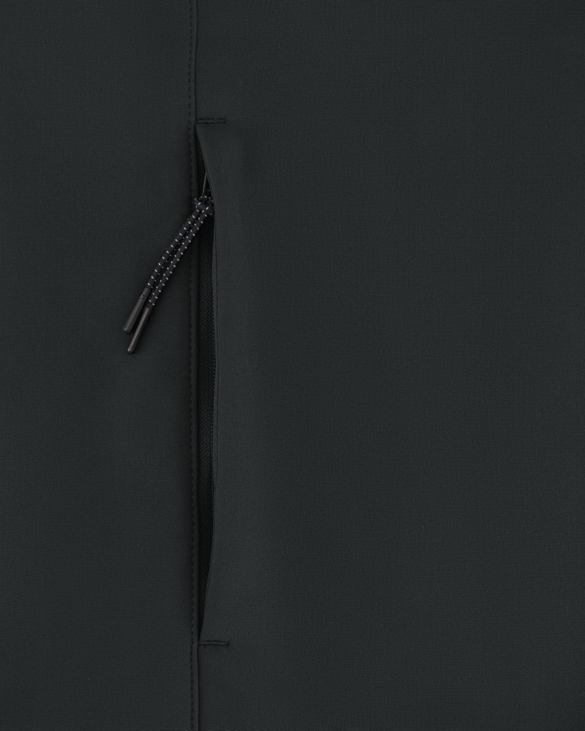 Cuello alto y manga pegada Bajo ceñido con cordón elástico y tope de plástico Cremallera de nailon invertida en el centro Bolsillos exteriores con cremallera y ribete y tirador elástico reflectante Forro polar interior integrado Paneles laterales elásticos para una mejor forma Mangas ceñidas con velcro ajustable Costuras interiores rematadas con ribetes reciclados Impermeable Transpirable y cortavientos