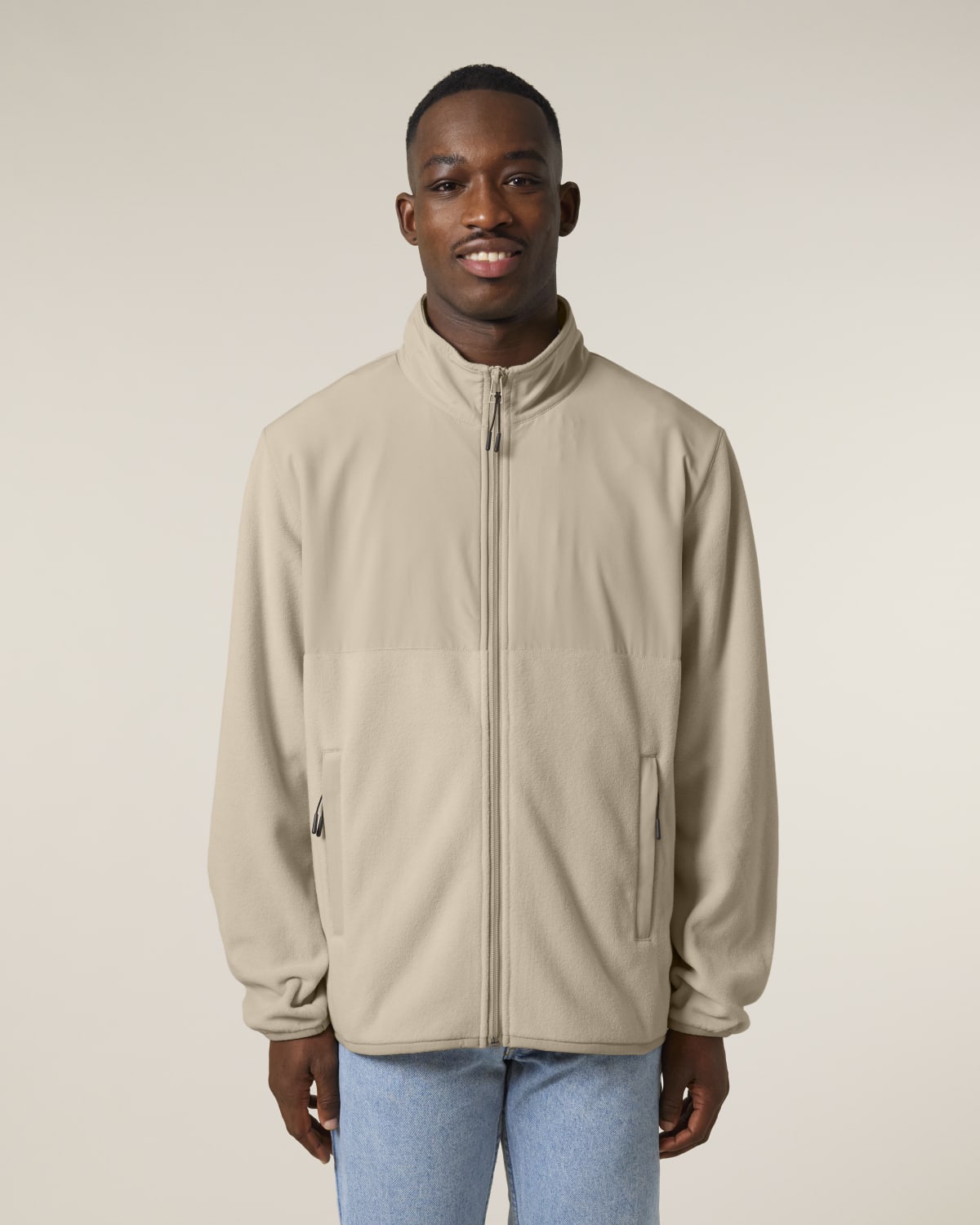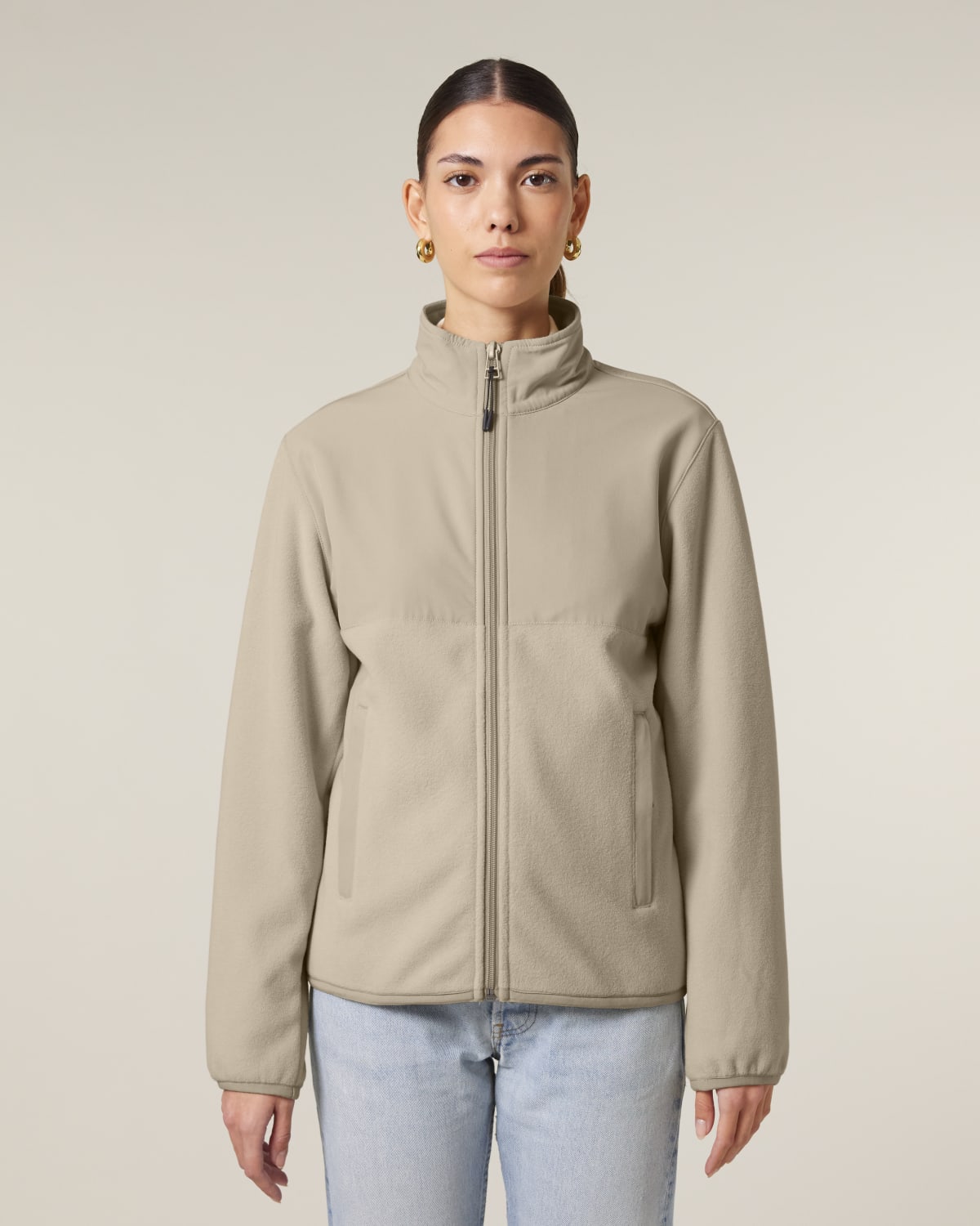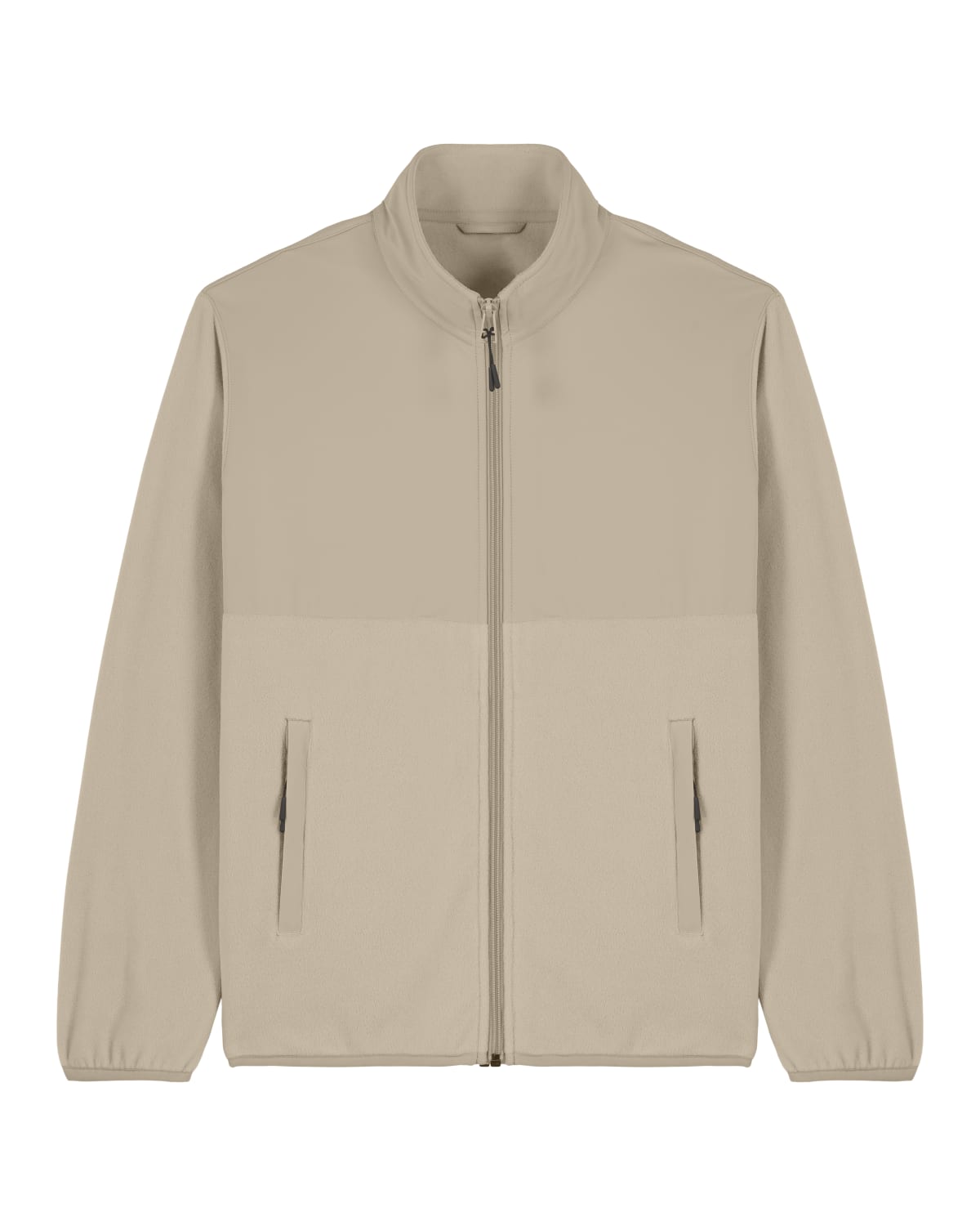 Mangas montadas Ribete elástico en los puños y dobladillo Lazo de ribete en el cuello interior y cinta en la nuca Cremallera de espiral de nylon con tirador metálico y final de cordón Tejido de forro polar cepillado con acabado anti-pilling en el interior y exterior Bolsillos welt laterales con cierre de cremallera oculto Tejido softshell de contraste en el canesú y el cuello exterior Cremallera invisible en el pecho izquierdo del usuario para decoración fácil