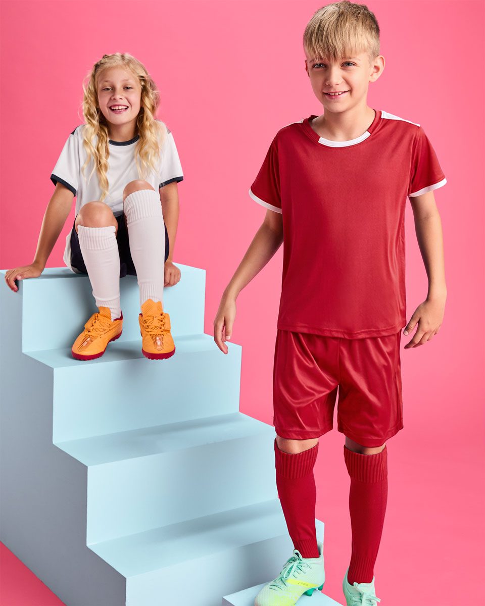 Confeccionado en 100% poliéster transpirable, el conjunto deportivo de manga corta para niño Roly Racing es ligero, es fácil de lavar, es fácil de secar, y lo más importante: mantiene al chico fresco y cómodo durante todo el partido o entreno.