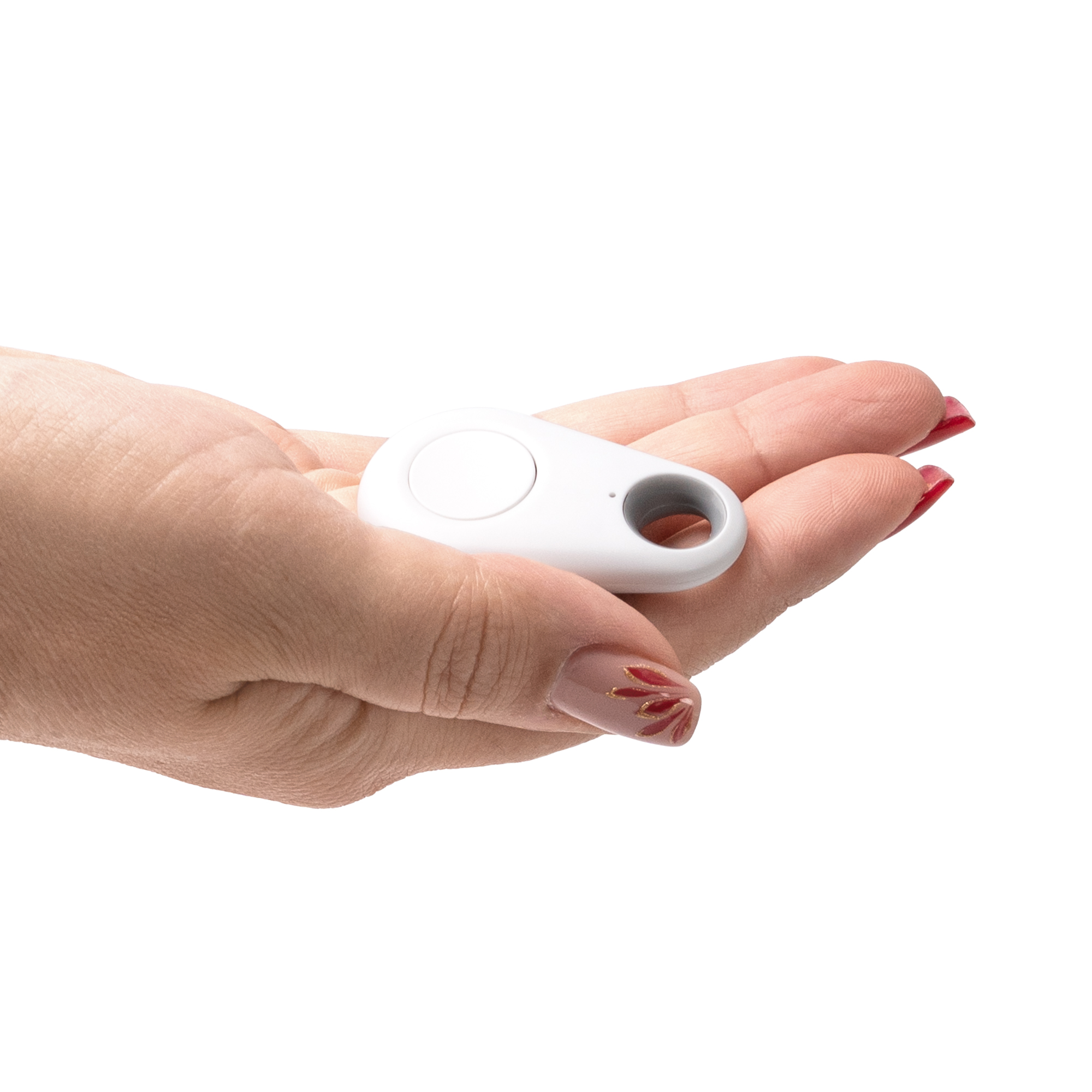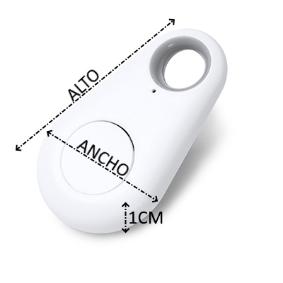 Dispositivo localizador anti-pérdida. Compatible con dispositivos iOS y Android mediante aplicación móvil a través de conexión Bluetooth. Funciona mediante pila e incorpora orificio para facilitar su transporte y uso. Entre sus funciones cuenta con función disparador remoto, grabación de voz y alarma con sonido.