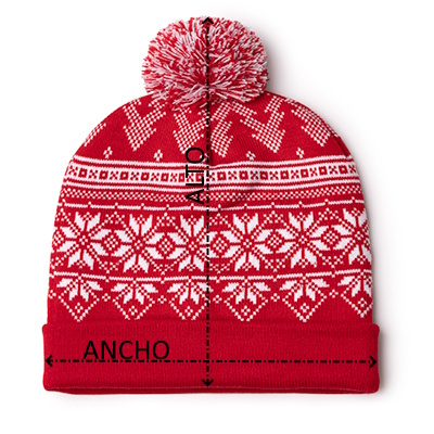 Gorro acrílico con diseño navideño. Su diseño presenta un patrón de copos de nieve, ideal para resaltar el espíritu festivo. Incluye un pompón decorativo en la parte superior y una banda frontal amplia para mayor ajuste y comodidad.