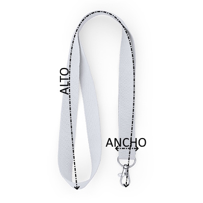 Lanyard de RPET con mosquetón y hangtag con indicativo de composición.