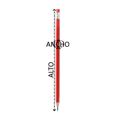 Lápiz de madera redondo. Cuenta con una goma en su extremo a conjunto del mismo color que el cuerpo.