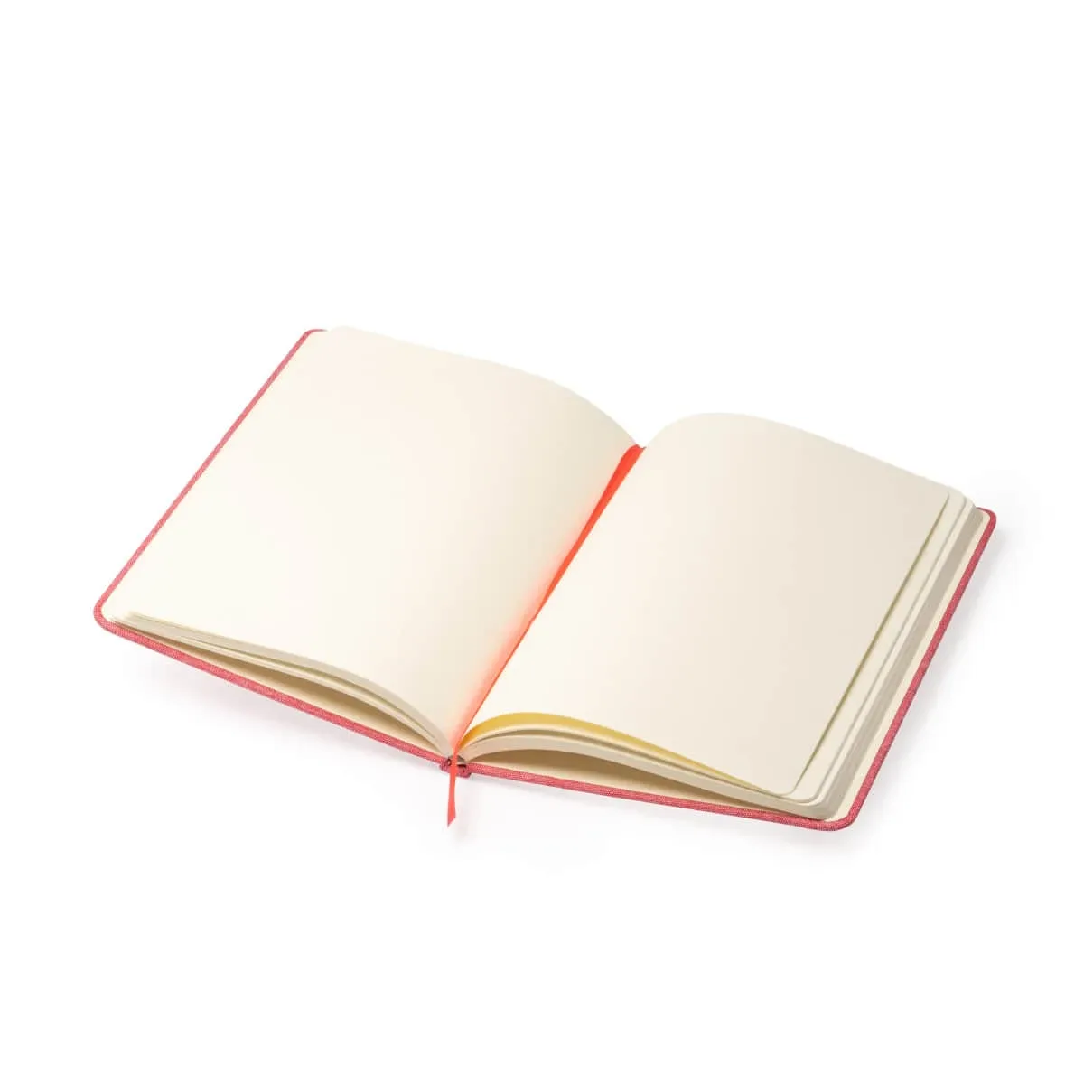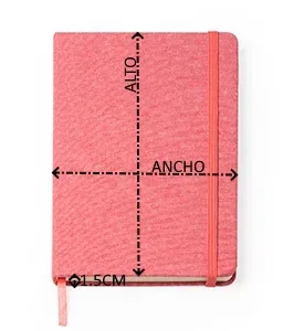 Bloc de notas A5 con tapas en algodón. Marcapáginas y banda elástica. 80 hojas lisas.