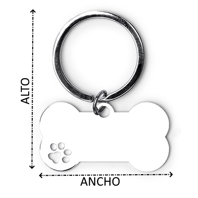 Llavero de metal 201 con diseño en forma de hueso. Cuenta con un detalle en el lateral en forma de huella.