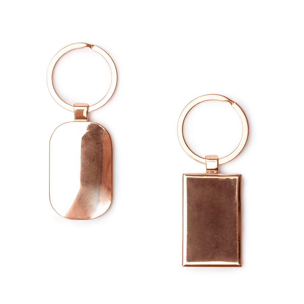 Llavero metálico con recubrimiento en cobre con interior en negro. Cuenta con amplia superficie para marcaje.