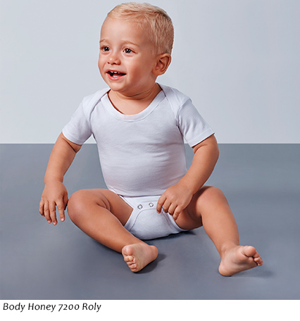 Nuevos modelos de camisetas de corte moderno y tejido más denso para dotar a la prenda de un material resistente y duradero, como sucede con la camiseta Akita 6534 Roly para niño y adulto, la camiseta de mujer Guadalupe 6647 Roly, la camiseta Collie 7136 Roly, y la novedad para bebés con el body Honey 7200 Roly.