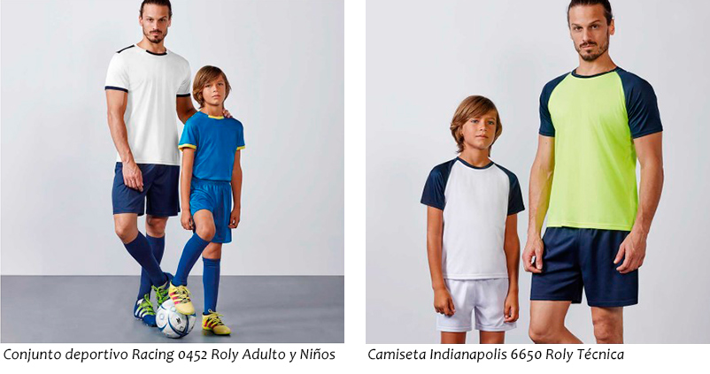 Los deportes en equipo son los que más salen beneficiados, porque Roly ha introducido muchas más combinaciones para realizar las actividades físicas de grupo con los conjuntos deportivos Racing 0452 Roly y United 0457 Roly para adultos y niños. Más distinciones en formas y dibujos que trazan las camisetas y definen los cuerpos de los deportistas.
