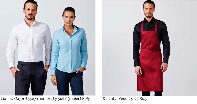 De ese modo, encontramos más variedad en la que elegir en camisas para ambos géneros ligeras y transpirables para facilitar el trabajo con el model de camisa Oxford de Roly, para hombre y mujer en los colores azul celeste y blanco, y también se suma un nuevo delantal Benoit 9125 Roly de corte más alto y más largo, fabricado con una tela más gruesa y así asegurar su durabilidad preparado para las jornadas más intensas.