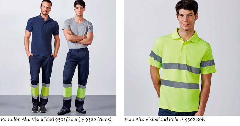 Además de las indumentarias para trabajar más comunes, para este año han querido dar cuenta de los profesionales que necesitan ser vistos por la noche con la presentación de equipos completos con reflectantes en dos variantes. Ya que se puede elegir entre dos modelos diferentes de pantalones, el pantalón de Alta Vilibilidad Soan 9301 Roly y Naos 9300 Roly. Conjuntamente a dos modelos distintos de chaquetas, la chaqueta de Alta Visibilidad Antares 9303 Roly y Epsylon 9304 Roly. Ambos casos se completan con un polo fluorescente con bandas reflectantes de alta visibilidad y cuello vuelto de botones: Polaris 9302 Roly.