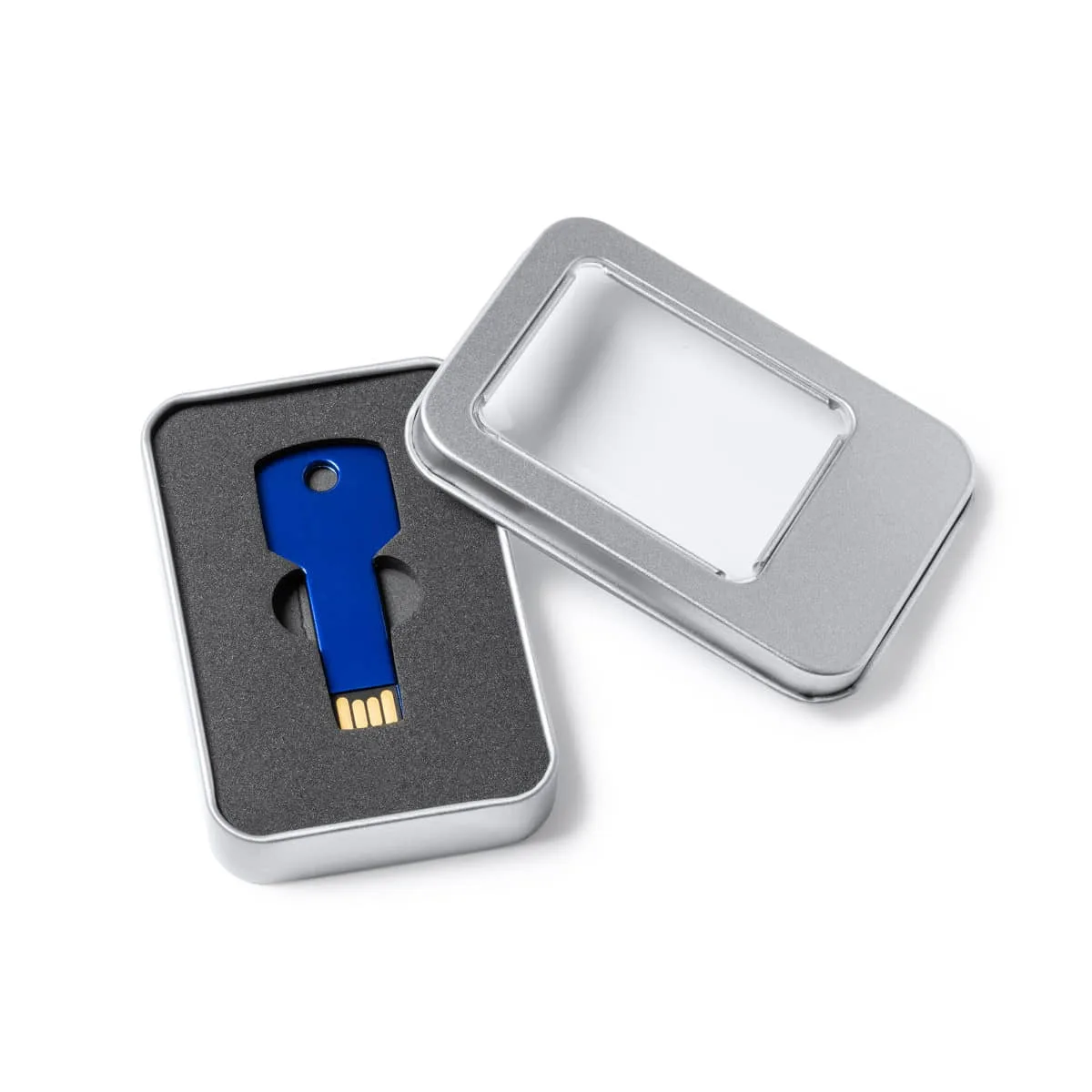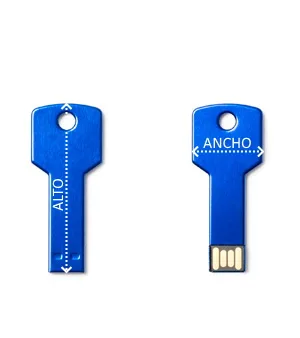 Memoria USB 2.0 de aluminio con diseño extraplano en forma de llave. Dispone de una capacidad de 16 GB.