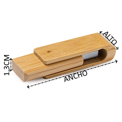 Memoria USB con cuerpo y clip giratorio, realizado con bambú. Capacidad de 16 GB.